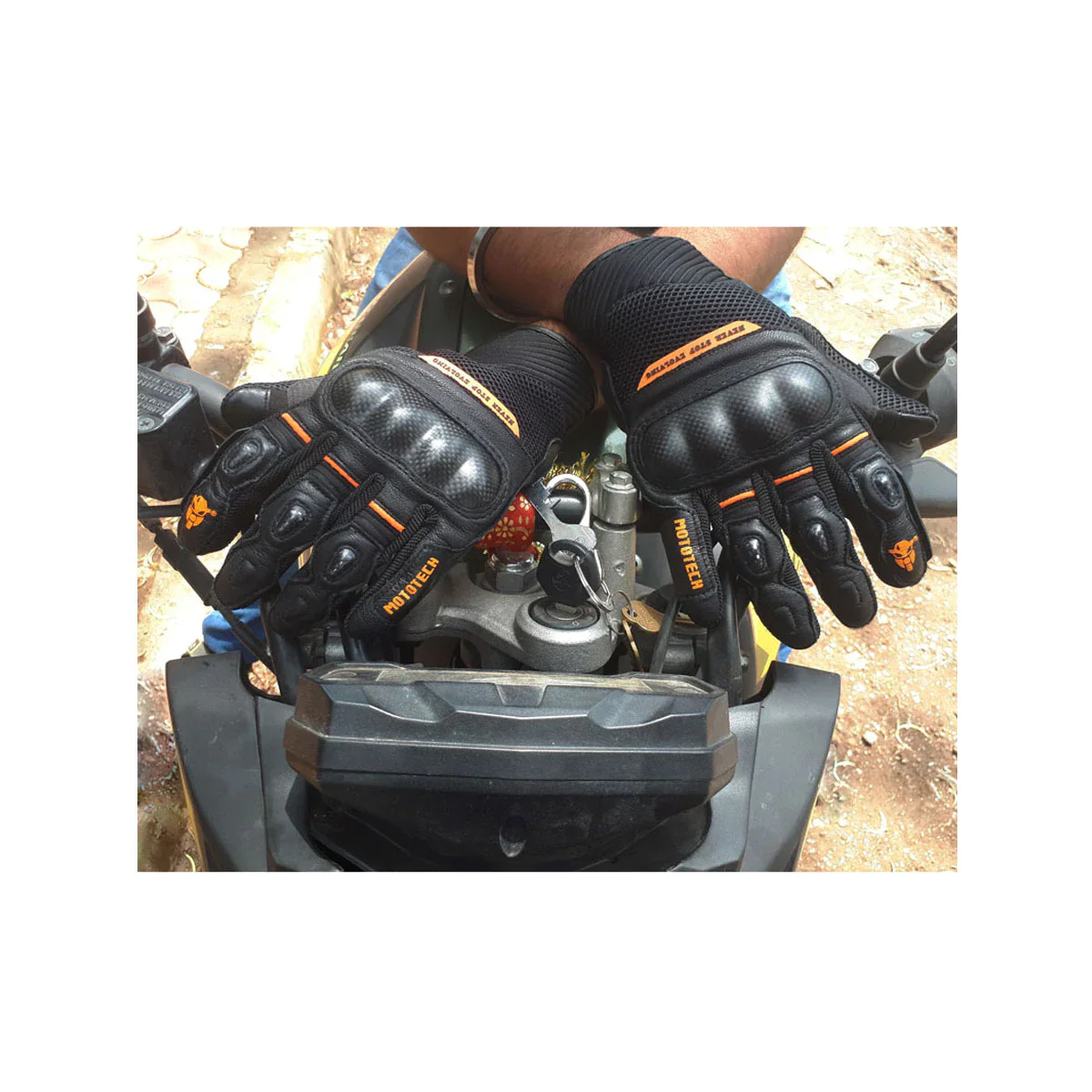 MOTOTECH Urbane Carbon Gloves - Black+Orange